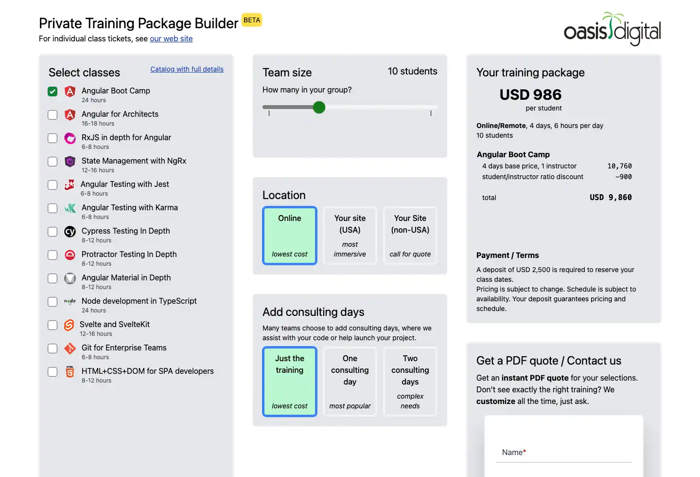 Private Training Package Builder - Oasis Digital