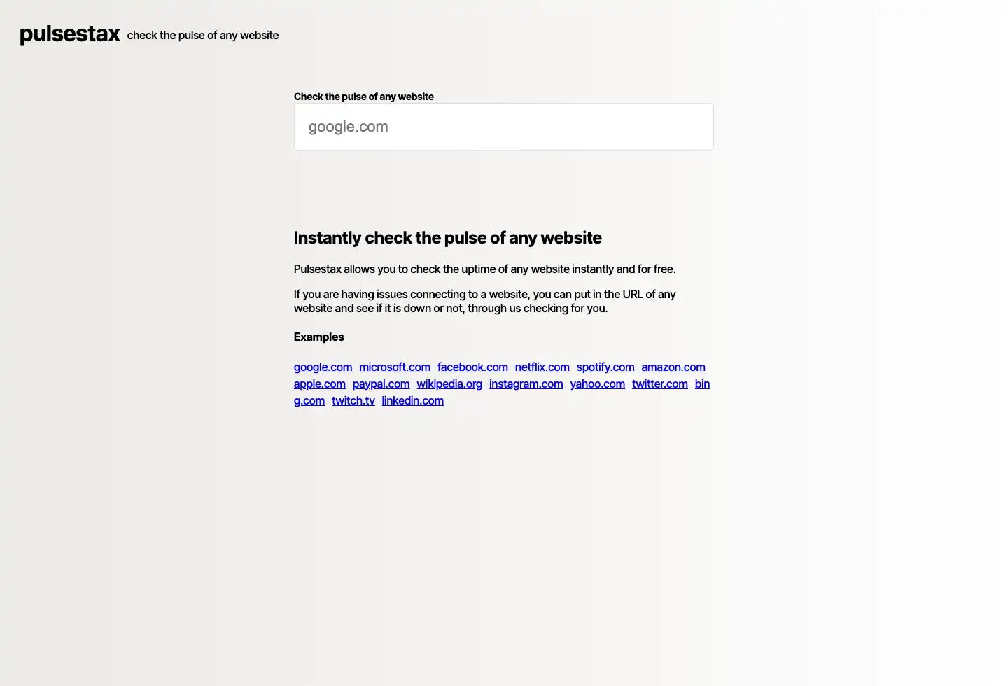 Pulsestax | Check the uptime and pulse of any website