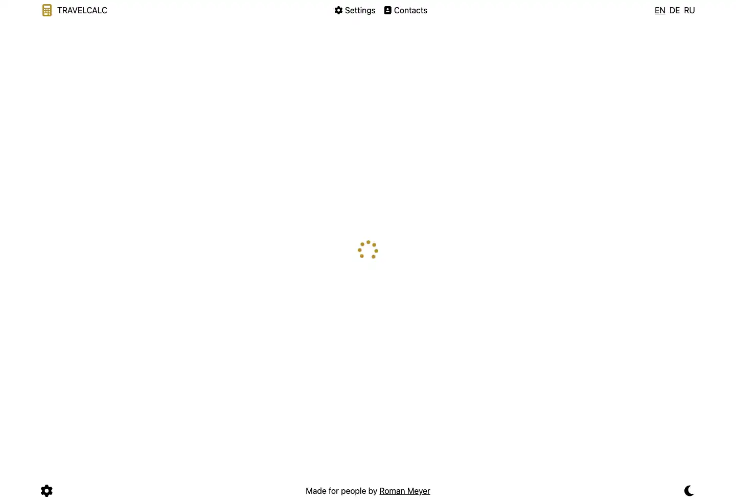 Main page - Travel Calculator